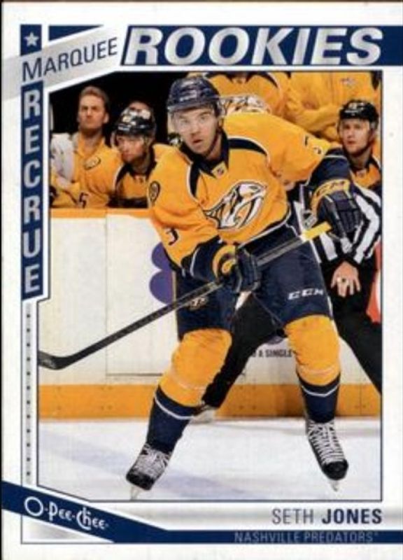 The Seth Jones 2013 Upper Deck #636 2013 O-Pee-Chee Update Rookie card is 1 of 21 Seth Jones' card variations in the 2013 Upper Deck set being tracked by Sports Card Investor, including #250 Base, #228 Young Guns Base, #250 Young Guns Base, #C108 Young Guns Canvas, and #228 Young Guns - Acetate.