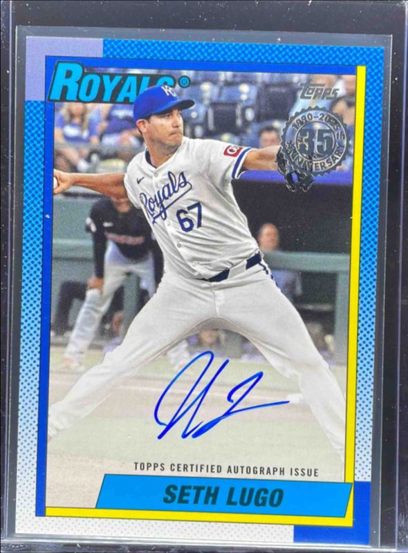The Seth Lugo 2025 Topps #90B2-SL 1990 Baseball Autographs (Series 2) card is 1 of 85 Seth Lugo's card variations in the 2025 Topps set being tracked by Sports Card Investor, including Base, Aqua Holo Foil, Diamante Foil, Holo Foil, and Pink Diamante Foil.