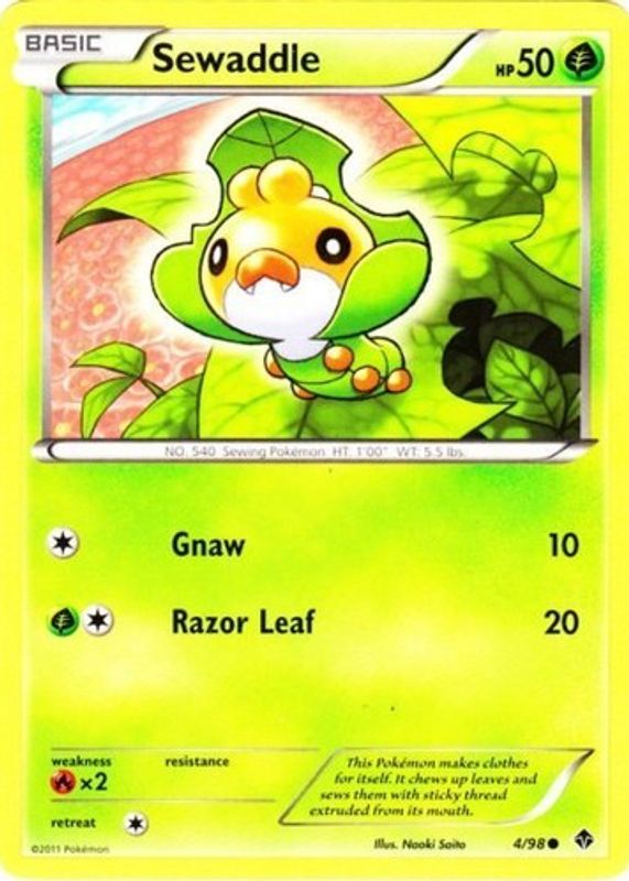 Sewaddle 2011 Black & White: Emerging Powers #04/98 Base RAW TCG (LIGHTLY PLAYED) Price Guide