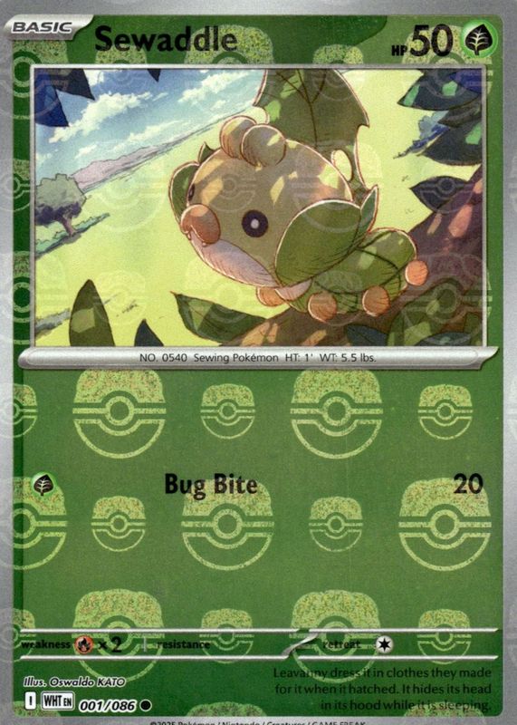 Sewaddle (Master Ball Pattern) - 001/086 - Common - Holo - NM - White Flare