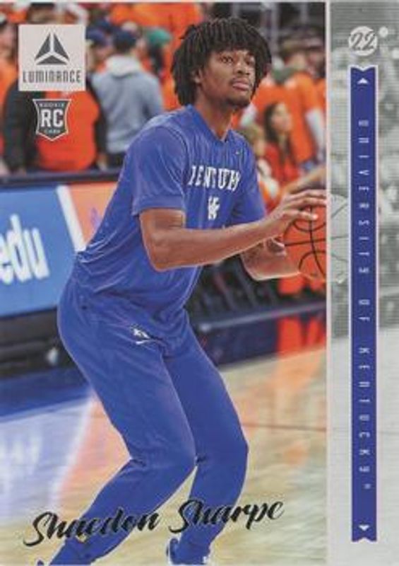 The Shaedon Sharpe 2022 Chronicles Draft Picks #41 Luminance Rookie card is 1 of 203 Shaedon Sharpe's card variations in the 2022 Chronicles Draft Picks set being tracked by Sports Card Investor, including Base, Black, Bronze, Pink, and Pulsar.