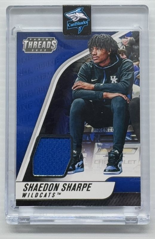 The Shaedon Sharpe 2022 Chronicles Draft Picks #TH-SHA Threads Rookie Memorabilia card is 1 of 203 Shaedon Sharpe's card variations in the 2022 Chronicles Draft Picks set being tracked by Sports Card Investor, including Base, Black, Bronze, Pink, and Pulsar.