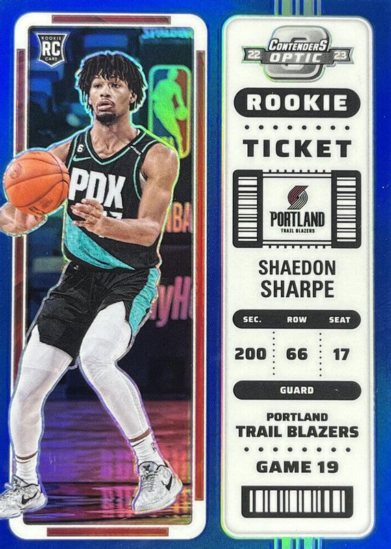 2022-23 Contenders Optic SHAEDON SHARPE RC Blue Prizm Rookie Ticket #'d /99