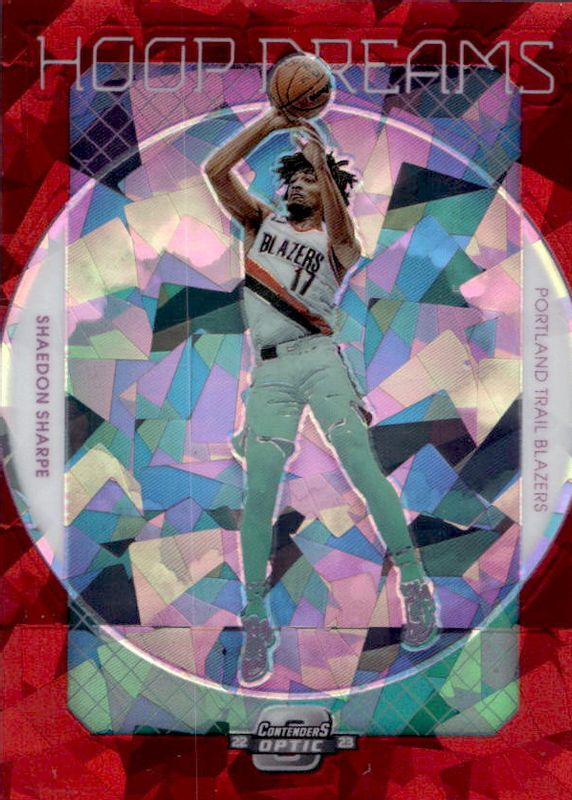 2022-23 Panini Contenders Optic Shaedon Sharpe Hoop Dreams Red Cracked Ice RC