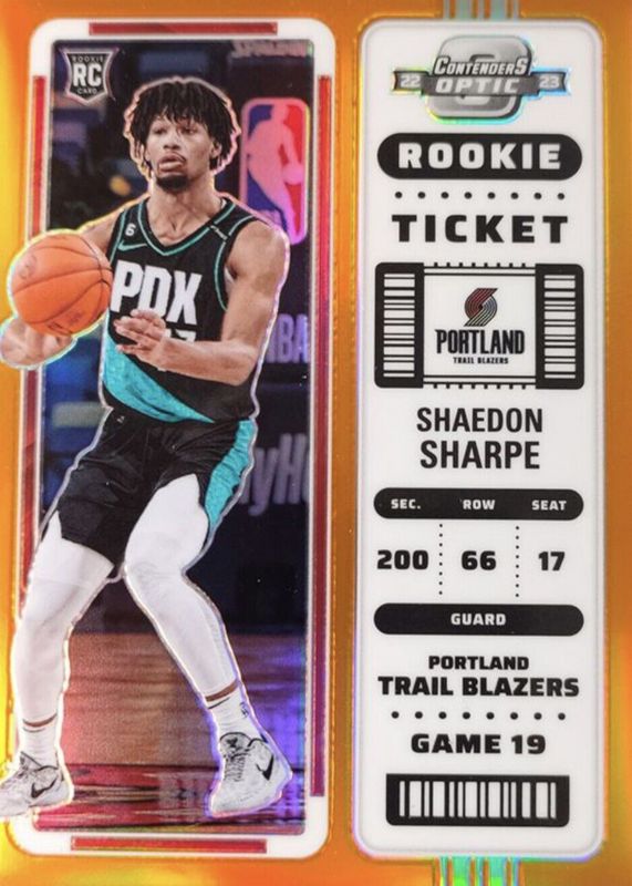 2022-23 Contenders Optic SHAEDON SHARPE Orange Prizm /49 Rookie Ticket - Blazers
