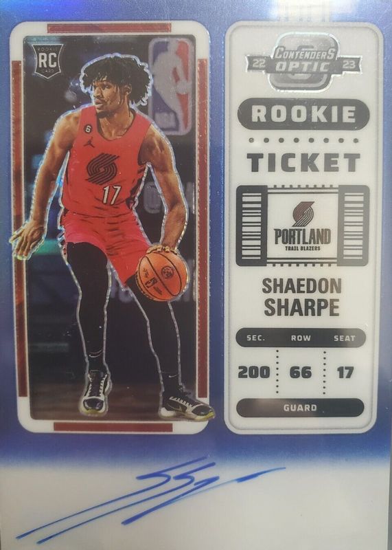 SHAEDON SHARPE 2022-23 CONTENDERS OPTIC BLUE ROOKIE TICKET RC AUTO /49 Q2560