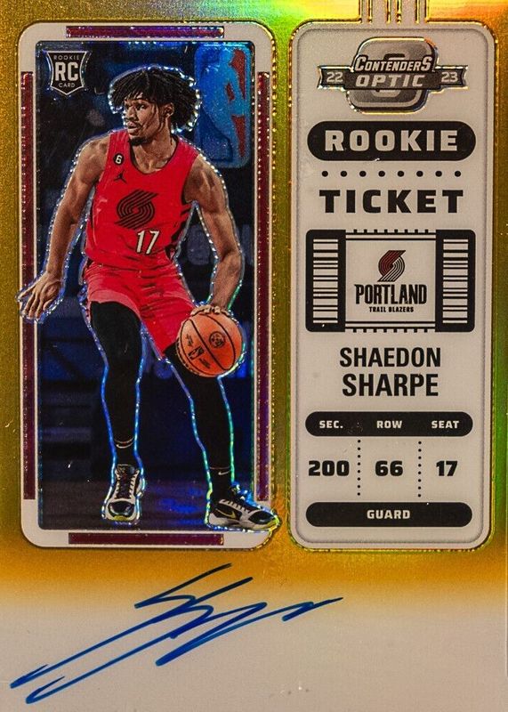 Shaedon Sharpe 2022 Contenders Optic #133 Rookie Ticket Auto - Gold /10 RAW Price Guide