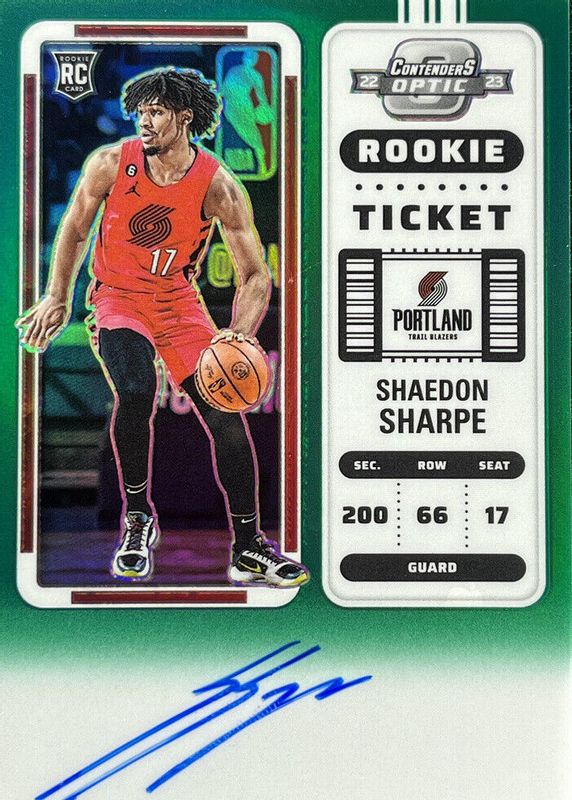 2022-23 Contenders Optic Shaedon Sharpe RC Green Auto #64/75 Trail Blazers