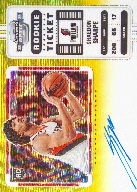 Auctions Ending Soon for Shaedon Sharpe 2022 Contenders Optic #133 Rookie Ticket Auto Variation - Gold Wave /10 RAW