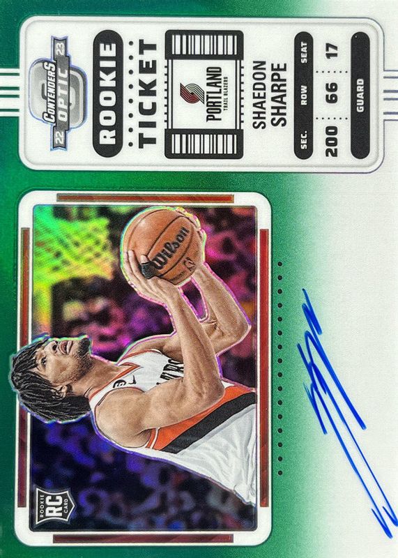 Best Prices Available For Sale of Shaedon Sharpe 2022 Contenders Optic #133 Rookie Ticket Auto Variation - Green /75