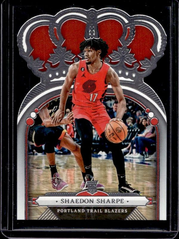 The Shaedon Sharpe 2022 Crown Royale #48 Rookie Silhouettes /199 card is 1 of 43 Shaedon Sharpe's card variations in the 2022 Crown Royale set being tracked by Sports Card Investor, including Base, Asia Red, Crystal, Blue Crystal /99, and Pink Crystal /75.