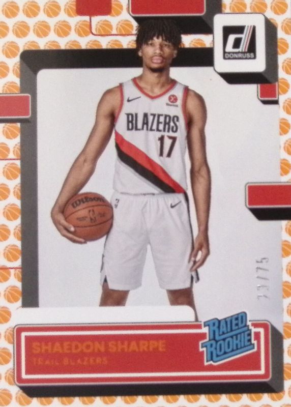 The Shaedon Sharpe 2022 Donruss #207 Basketball /75 Rookie card in Raw condition has not changed in price in the last 30 days and was last sold for $15.25 .