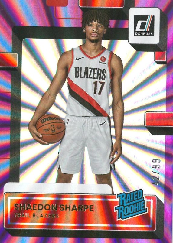2022-23 Panini Donruss - Rated Rookie Holo Purple Laser #207 Shaedon Sharpe /99