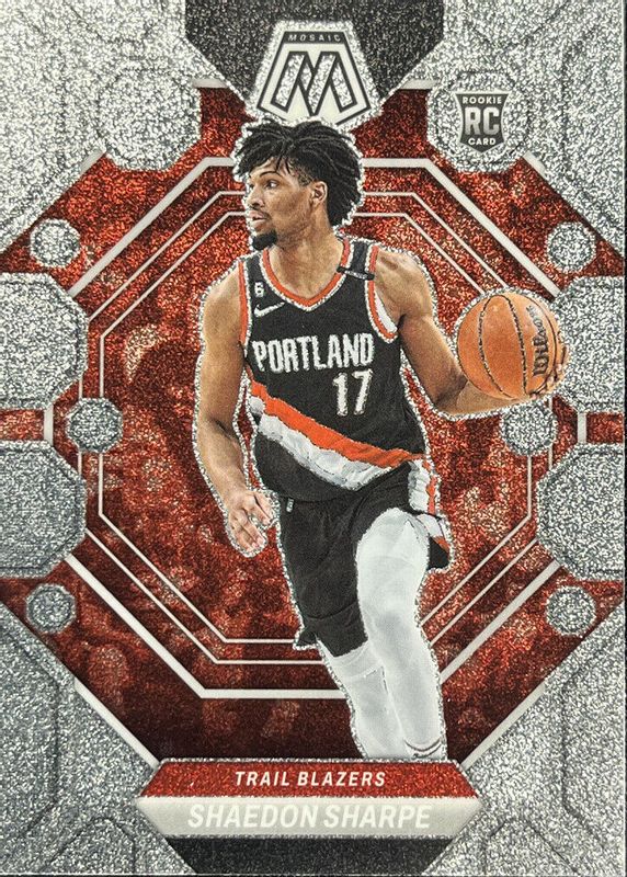 The Shaedon Sharpe 2022 Mosaic #213 Glitter /(SSP) Rookie card in Raw condition has not changed in price in the last 30 days and was last sold for $17.00 .