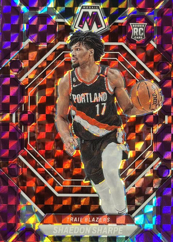 2022-23 Panini Mosaic Shaedon Sharpe Purple Mosaic Prizm #213 Rookie RC 76/99