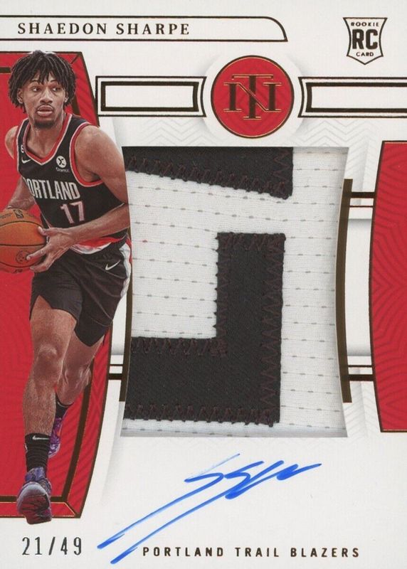 This card is 1 of 10 Shaedon Sharpe's card variations in the 2022 National Treasures set being tracked by Sports Card Investor, including Rookie Patch Auto /99, Rookie Patch Auto - Red /75, Rookie Patch Auto - Pink /25, Rookie Patch Auto - Gold FOTL /24, and Rookie Patch Auto - Gold /10.