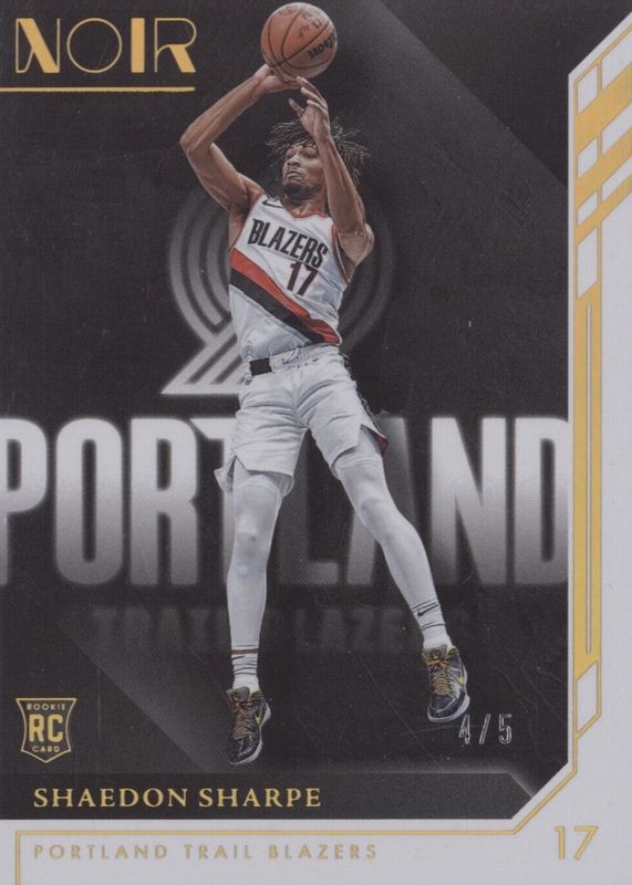 The Shaedon Sharpe 2022 Noir #152 Association Edition - Holo Gold /5 Rookie card in Raw condition has not changed in price in the last 30 days and was last sold for $66.28 .