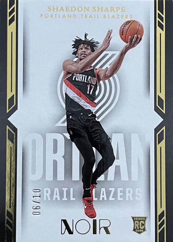 2022-23 Panini Noir /10 Shaedon Sharpe Rookie Gold Icon Edition Trailblazers