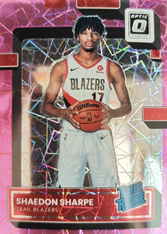 The Shaedon Sharpe 2022 Optic #249 Pink Velocity /79 Rookie card in Raw condition has not changed in price in the last 30 days and was last sold for $31.00 .