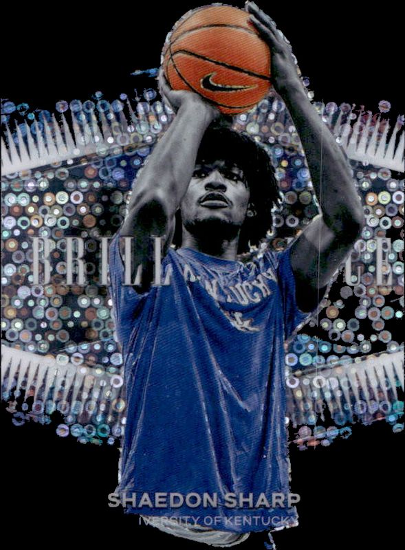 The Shaedon Sharpe 2022 Prizm Draft Picks #BR-SS Brilliance - Circles Rookie card is 1 of 139 Shaedon Sharpe's card variations in the 2022 Prizm Draft Picks set being tracked by Sports Card Investor, including #54 Base, #54b Base, #54 Blue Circles, #54b Choice Blue Yellow & Green, and #54 Choice Blue Yellow & Green.