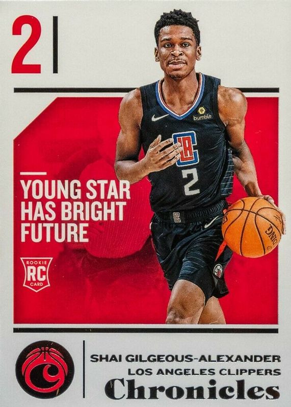The Shai Gilgeous-Alexander 2018 Chronicles #89 Base Rookie card in Raw condition has moved down -$2.74 (-34.3%) in the last 30 days and was last sold for $5.25 .