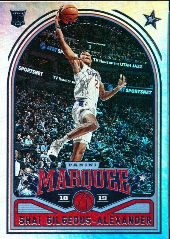 The Shai Gilgeous-Alexander 2018 Chronicles #267 Marquee Rookie card in Raw condition has moved up $14.99 (+300%) in the last 30 days and was last sold for $19.99 .