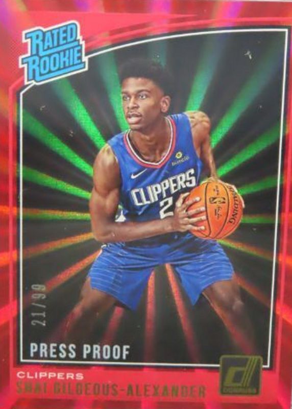 2018-19 Panini Donruss Shai Gilgeous Alexander Red Laser Press Proof Rookie /99