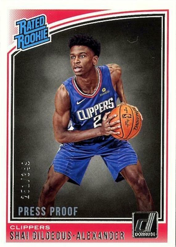 The Shai Gilgeous-Alexander 2018 Donruss #162 Press Proof Silver /349 Rookie card in Raw condition has moved down -$86.36 (-62.9%) in the last 30 days and was last sold for $51.00 .