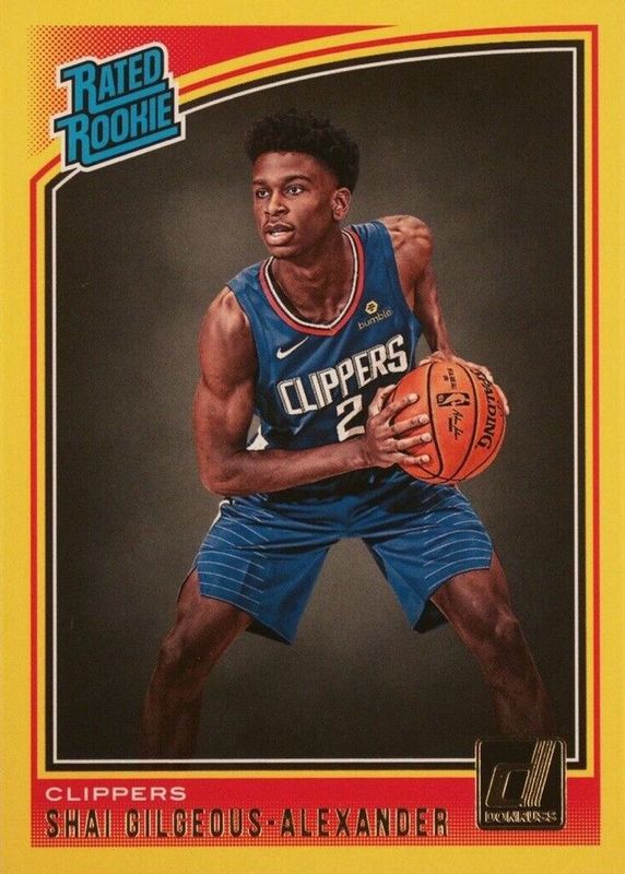 The Shai Gilgeous-Alexander 2018 Donruss #162 Yellow Flood Rookie card in Raw condition has not changed in price in the last 30 days and was last sold for $99.00 .