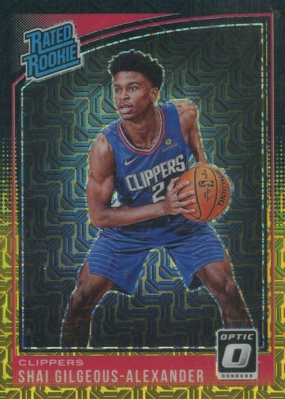 This card is 1 of 33 Shai Gilgeous-Alexander's card variations in the 2018 Optic set being tracked by Sports Card Investor, including Base, Blue Velocity, Checkerboard, Choice, and Fast Break.