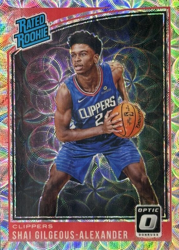 This card is 1 of 33 Shai Gilgeous-Alexander's card variations in the 2018 Optic set being tracked by Sports Card Investor, including Base, Blue Velocity, Checkerboard, Choice, and Fast Break.