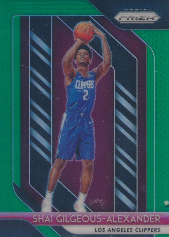 The Shai Gilgeous-Alexander 2018 Prizm #184 Green Rookie card in Raw condition has moved down -$16.49 (-15.2%) in the last 30 days and was last sold for $92.00 .