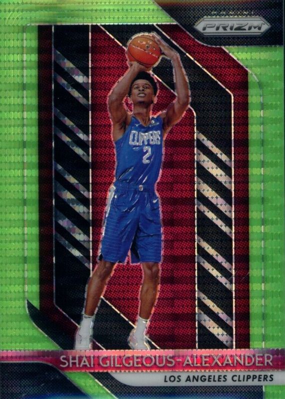 The Shai Gilgeous-Alexander 2018 Prizm #184 Green Pulsar /25 Rookie card in Raw condition has not changed in price in the last 30 days and was last sold for $698.00 .