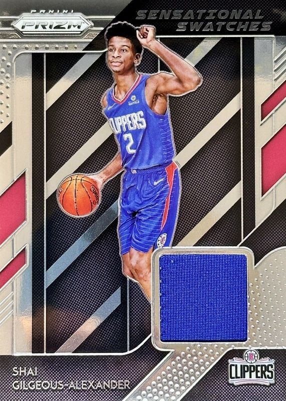 The Shai Gilgeous-Alexander 2018 Prizm #95 Sensational Swatches Rookie card in Raw condition has moved up $18.70 (+53.4%) in the last 30 days and was last sold for $53.70 .