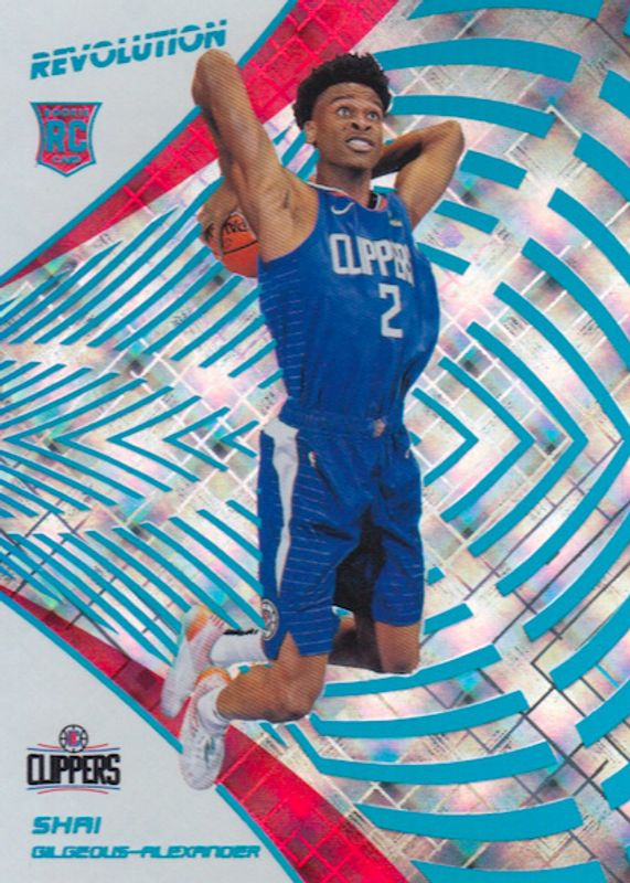 The Shai Gilgeous-Alexander 2018 Revolution #103 Cosmic /100 Rookie card in Raw condition has not changed in price in the last 30 days and was last sold for $54.19 .