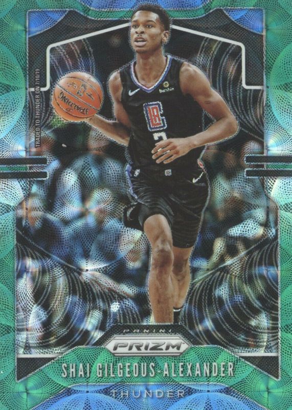 This card is 1 of 33 Shai Gilgeous-Alexander's card variations in the 2019 Prizm set being tracked by Sports Card Investor, including Base, Choice Blue Yellow Green, Fanatics Green Ice, FOTL Blue Shimmer, and Silver.