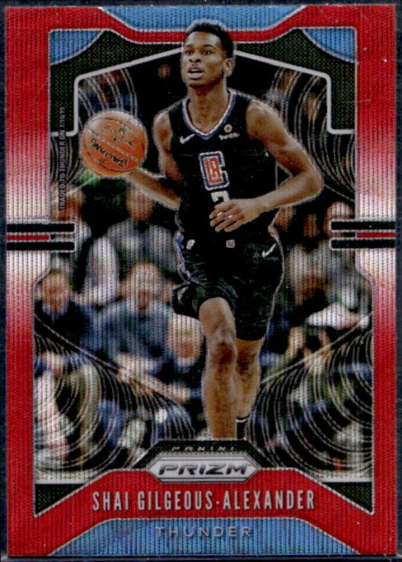 The Shai Gilgeous-Alexander 2019 Prizm #122 Ruby Wave card is 1 of 42 Shai Gilgeous-Alexander's card variations in the 2019 Prizm set being tracked by Sports Card Investor, including Base, Choice Blue Yellow Green, Fanatics Green Ice, Fast Break, and FOTL Blue Shimmer.