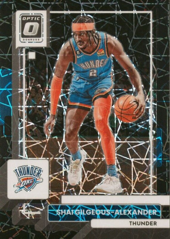 This card is 1 of 60 Shai Gilgeous-Alexander's card variations in the 2022 Optic set being tracked by Sports Card Investor, including Base, Checkerboard, Choice Red & Green, Fast Break, and Green Shock.