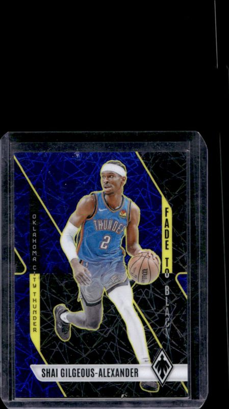 The Shai Gilgeous-Alexander 2023 Phoenix #5 Fade to Black - Blue Lazer /275 card is 1 of 209 Shai Gilgeous-Alexander's card variations in the 2023 Phoenix set being tracked by Sports Card Investor, including Base, Blue Ice, Color Burst, Dream Weaver, and Hieroglyphs.