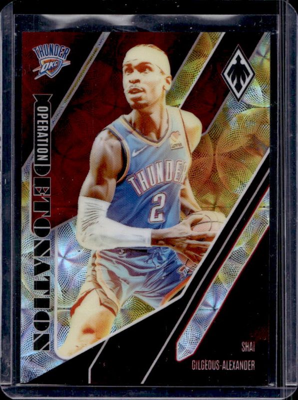 The Shai Gilgeous-Alexander 2023 Phoenix #3 Operation Detonation - International Red /75 card is 1 of 209 Shai Gilgeous-Alexander's card variations in the 2023 Phoenix set being tracked by Sports Card Investor, including Base, Blue Ice, Color Burst, Dream Weaver, and Hieroglyphs.