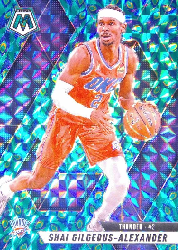 Auctions Ending Soon for Shai Gilgeous-Alexander 2024 Mosaic #38 Choice Peacock /(SSP) RAW