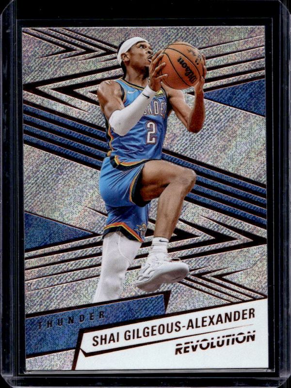 The Shai Gilgeous-Alexander 2024 Revolution #8 Base card is 1 of 88 Shai Gilgeous-Alexander's card variations in the 2024 Revolution set being tracked by Sports Card Investor, including Astro, Blue Storm, Chinese New Year, Fractal, and Groove.