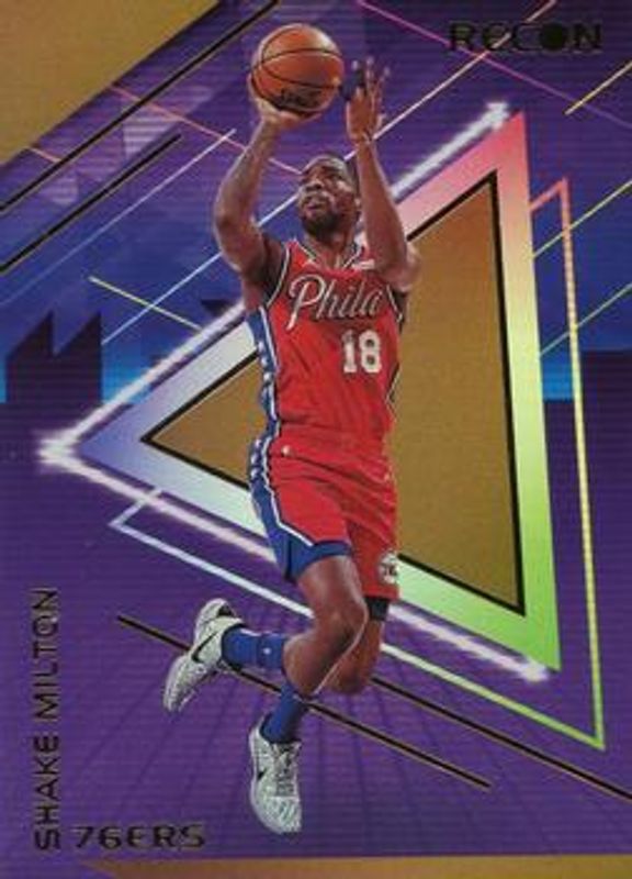 The Shake Milton 2020 Recon #49 Holo card is 1 of 12 Shake Milton's card variations in the 2020 Recon set being tracked by Sports Card Investor, including Base, Bronze, Pink, Spiral, and Red /199.