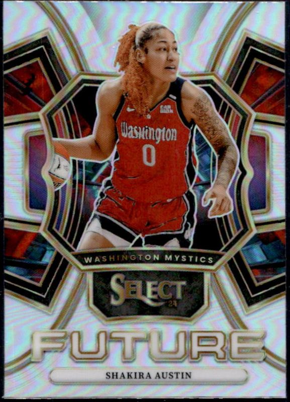The Shakira Austin 2024 Select WNBA #12 Select Future Silver Rookie card is 1 of 61 Shakira Austin's card variations in the 2024 Select WNBA set being tracked by Sports Card Investor, including #17 Base, #139 Base, #139 Base Green Ice, #17 Base Green Ice, and #17 Base Pink Ice.