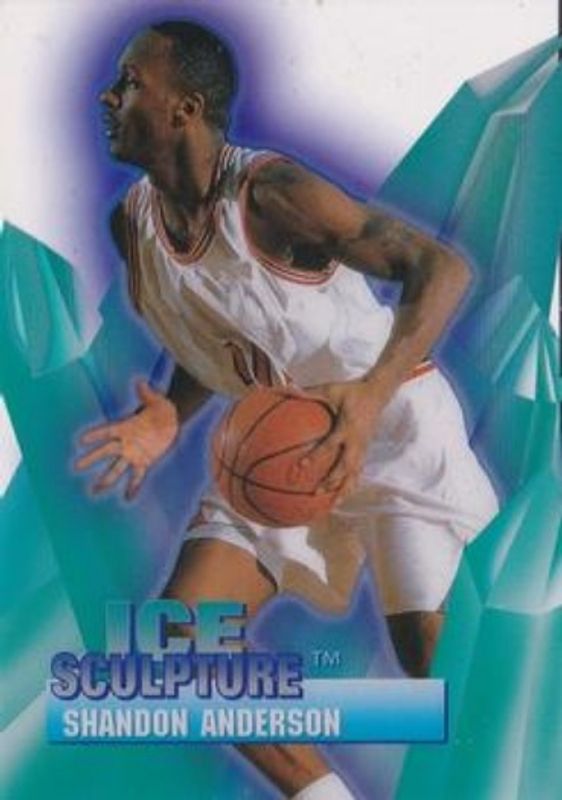 The Shandon Anderson 1996 Collector's Edge #37 Ice Sculpture Rookie card is 1 of 5 Shandon Anderson's card variations in the 1996 Collector's Edge set being tracked by Sports Card Investor, including Base, Die Cuts, Gold, and Pink.
