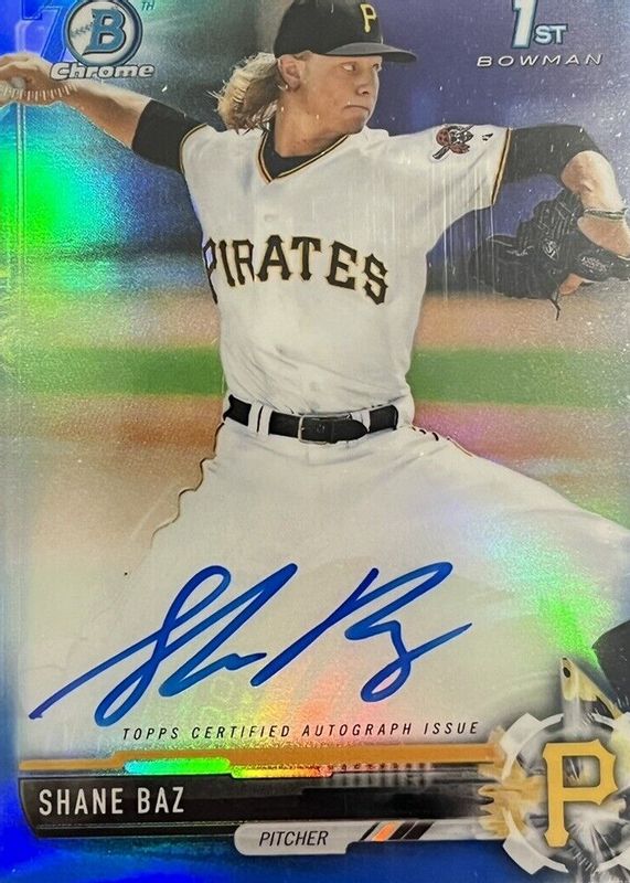 This card is 1 of 17 Shane Baz's card variations in the 2017 Bowman Draft set being tracked by Sports Card Investor, including Chrome (1st), Chrome - Refractor (1st), Chrome DP Auto (1st), Chrome DP Auto - Refractor /499 (1st), and Chrome DP Auto - Purple Refractor /250 (1st).
