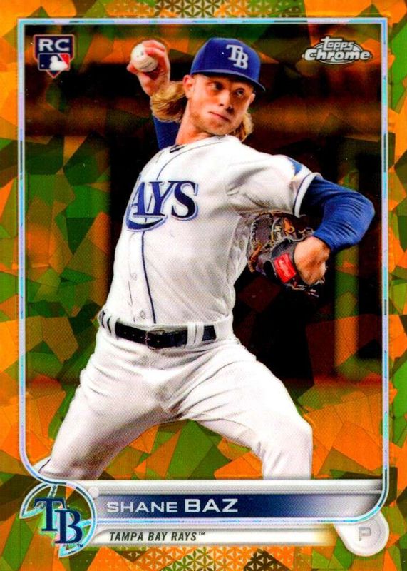 This card is 1 of 7 Shane Baz's card variations in the 2022 Topps Chrome Sapphire Edition set being tracked by Sports Card Investor, including Base, Orange /25, Purple /10, Red /5, and Padparadscha /1.