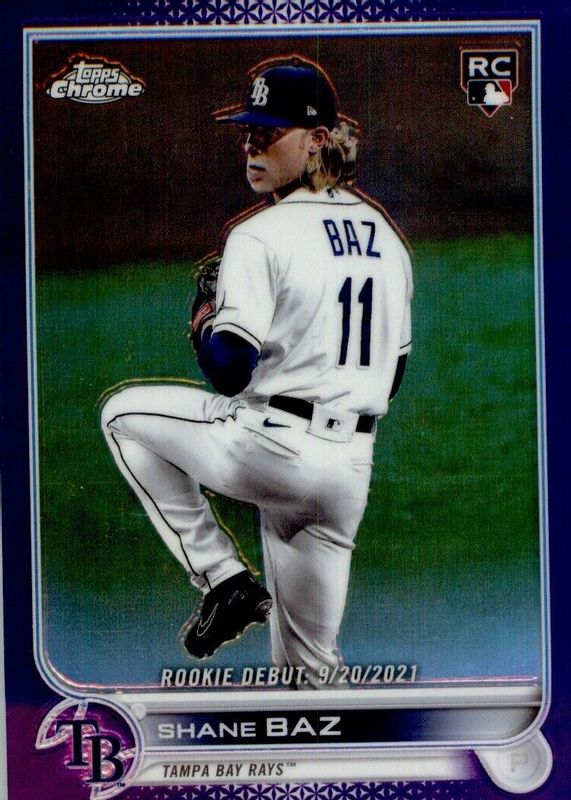 The Shane Baz 2022 Topps Chrome Update #USC175 Purple Refractor Rookie card in Raw condition has moved down -$0.49 (-32.9%) in the last 30 days and was last sold for $1.00 .