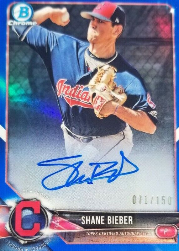 Best Prices Available For Sale of Shane Bieber 2018 Bowman Chrome #BCPA-SB Prospect Auto - Blue Refractor /150