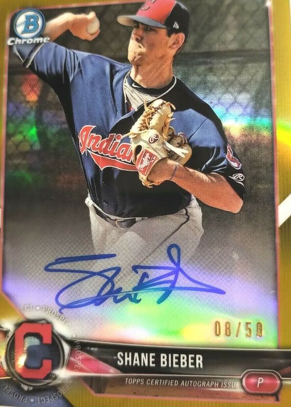 Shane Bieber 2018 Bowman Chrome #BCPA-SB Prospect Auto - Gold Refractor /50 Rookie RAW Price Guide